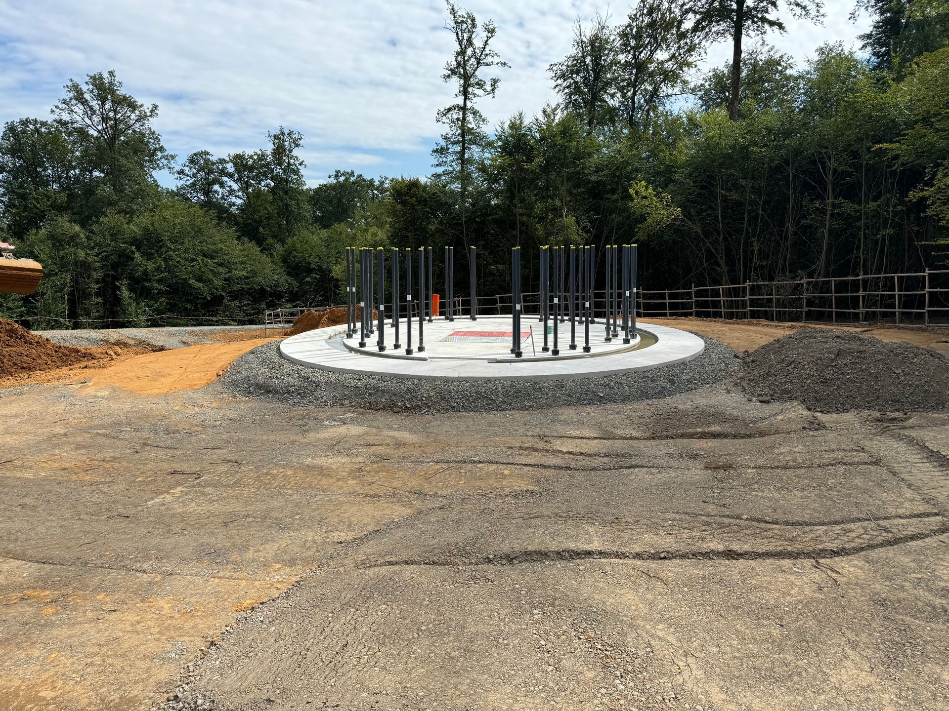 Stand September 2024: Nachdem alle Wege, Kranstell- und Montageflächen hergerichtet wurden, konnten die Fundamentarbeiten durch die Firma Max Bögl durchgeführt werden. Im nächsten Schritt werden die Betonfertigteile für den Betonturmbau angeliefert.