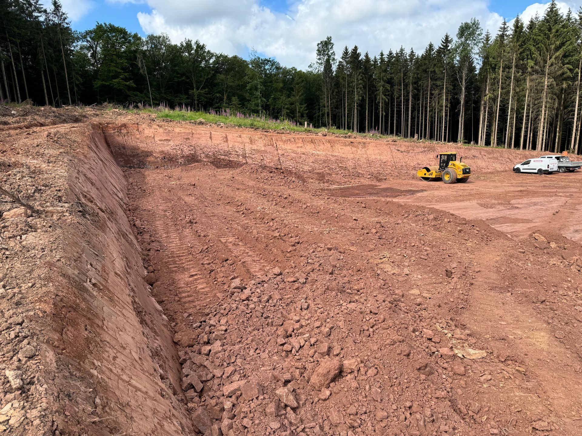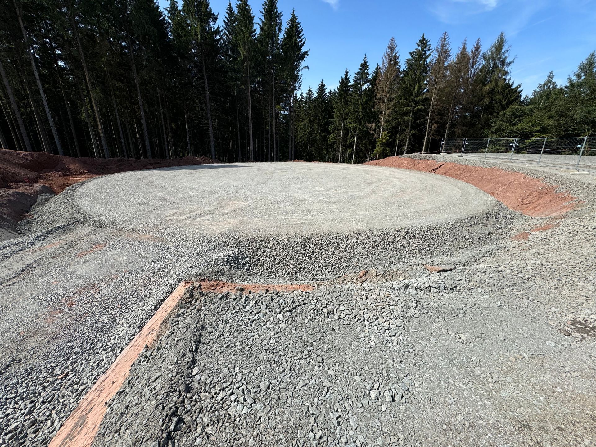 Stand September 2024: Nachdem alle Wege, Kranstell- und Montageflächen hergerichtet wurden, beginnen ab KW 37 die Fundamentarbeiten durch die Fa. Max Bögl.